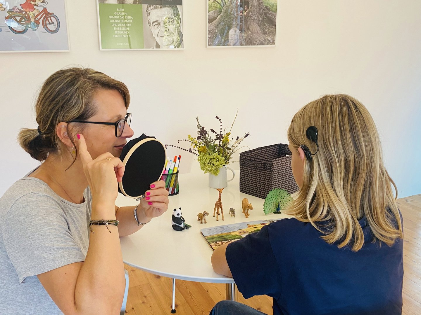 Um den Therapieprozess möglichst effektiv zu gestalten, ist mir ein interdisziplinäres Arbeiten sehr wichtig. Dazu vernetze ich mich mit beteiligten Institutionen wie Kindertagespflegen, Kitas, Schulen, Rehaeinrichtungen, Ärzten, Hörgeräteakustikern, Integrationshelfern, Alltagsbegleitern etc.